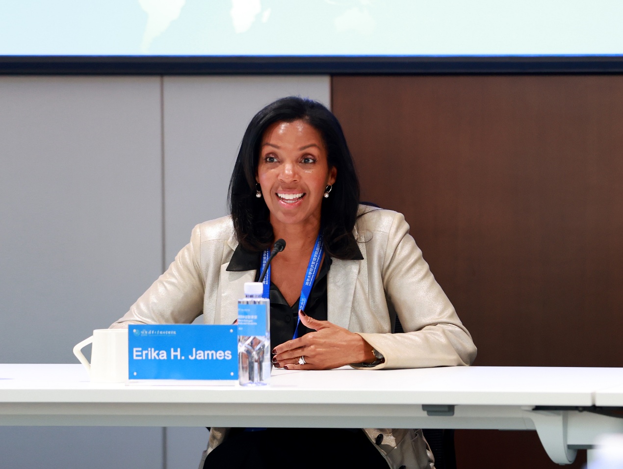 Erika H. James, Dean of the Wharton School of the University of Pennsylvania and a member of the Advisory Board of Tsinghua University's School of Economics and Management (Tsinghua SEM), engaged in a wide-ranging dialogue with Tsinghua faculty and doctoral students on October 17, 2025.