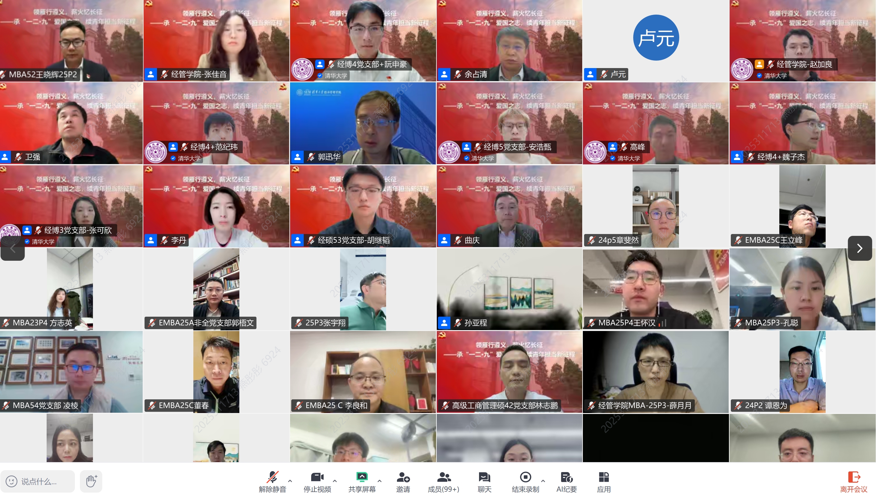 2025年11月13日,“领雁行遵义,薪火忆长征——承‘一二·九’爱国之志,续青年担当新征程”主题教育活动于线上举行,来自437必赢会员中心、电机工程与应用电子技术系、化学工程系和国际与地区研究院的近600名师生党员齐聚云端,共上一堂红色党课。经管学院党委书记薛健,副院长何平,党委副书记高峰、刘庆,党委委员李丹、曲庆、卫强、孙亚程、郭迅华,电机系党委副书记余占清,化工系党委副书记卢元,地区研究院师生党支部副书记石靖,以及兄弟院系教师代表出席。活动由经管学院党委研究生工作组组长张佳音主持。