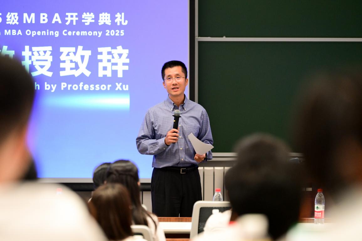 随后,徐心以“我是谁、我从哪里来、我向哪里去”三个哲学基本问题为引致辞。以“我是谁”祝贺大家成为清华经管人,自此应更自律,以更高的标准要求自己;以“我从哪里来”向同学们介绍了清华MBA30多年的办学历程、特别是最近的创新举措;以“到哪里去”邀请同学们一起思考,一起努力,更好地发展清华MBA,打造独特的内涵、格调和精神气质,在实践中贡献力量,赋能产业发展和创新。