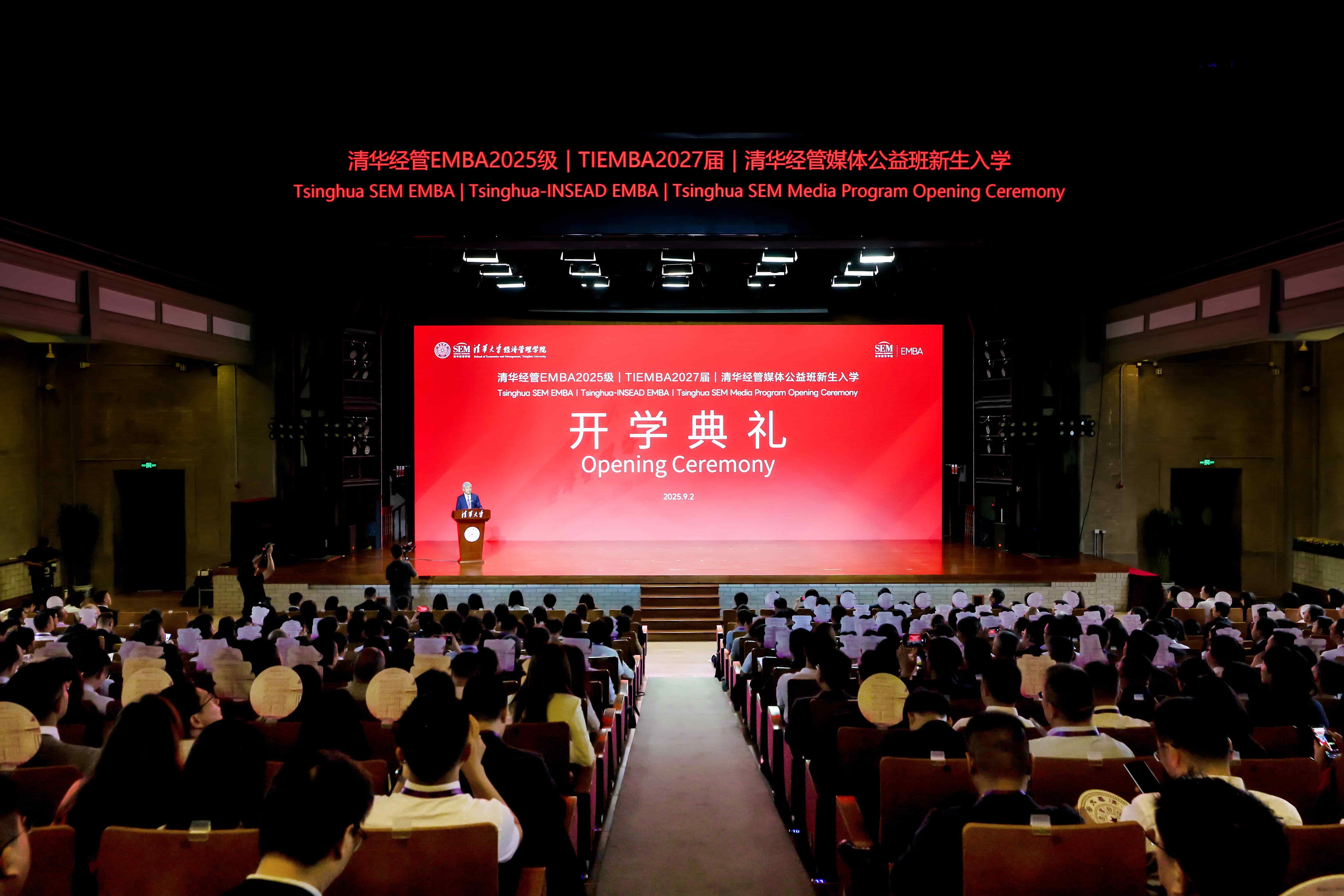 2025年9月2日,清华经管EMBA2025级、清华-INSEAD双学位EMBA(TIEMBA)项目2027届和清华经管媒体公益班新生开学典礼在437必赢会员中心大礼堂举行。清华经管学院院长白重恩,清华经管学院党委书记薛健,TIEMBA项目合作方欧洲工商管理学院(INSEAD)学术主任罗小薇,清华经管EMBA教育中心主任庄丽等出席典礼。开学典礼由薛健主持。