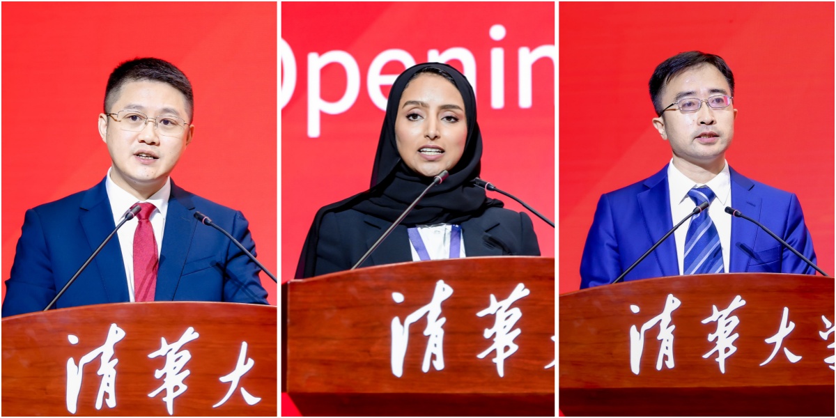 清华经管EMBA25-A班新生、广东洪兴实业股份有限公司董事长郭梧文,清华经管TIEMBA2027届新生、阿布扎比国家石油公司项目总监李可乐(Khoula Almashjari),清华经管媒体公益班新生、新华社高级经济师王朴作为新生代表发言,分享了所属行业的前沿动态与入学心得,期待在清华经管EMBA的学习中持续精进自我,与同窗携手成长,共筑美好未来。