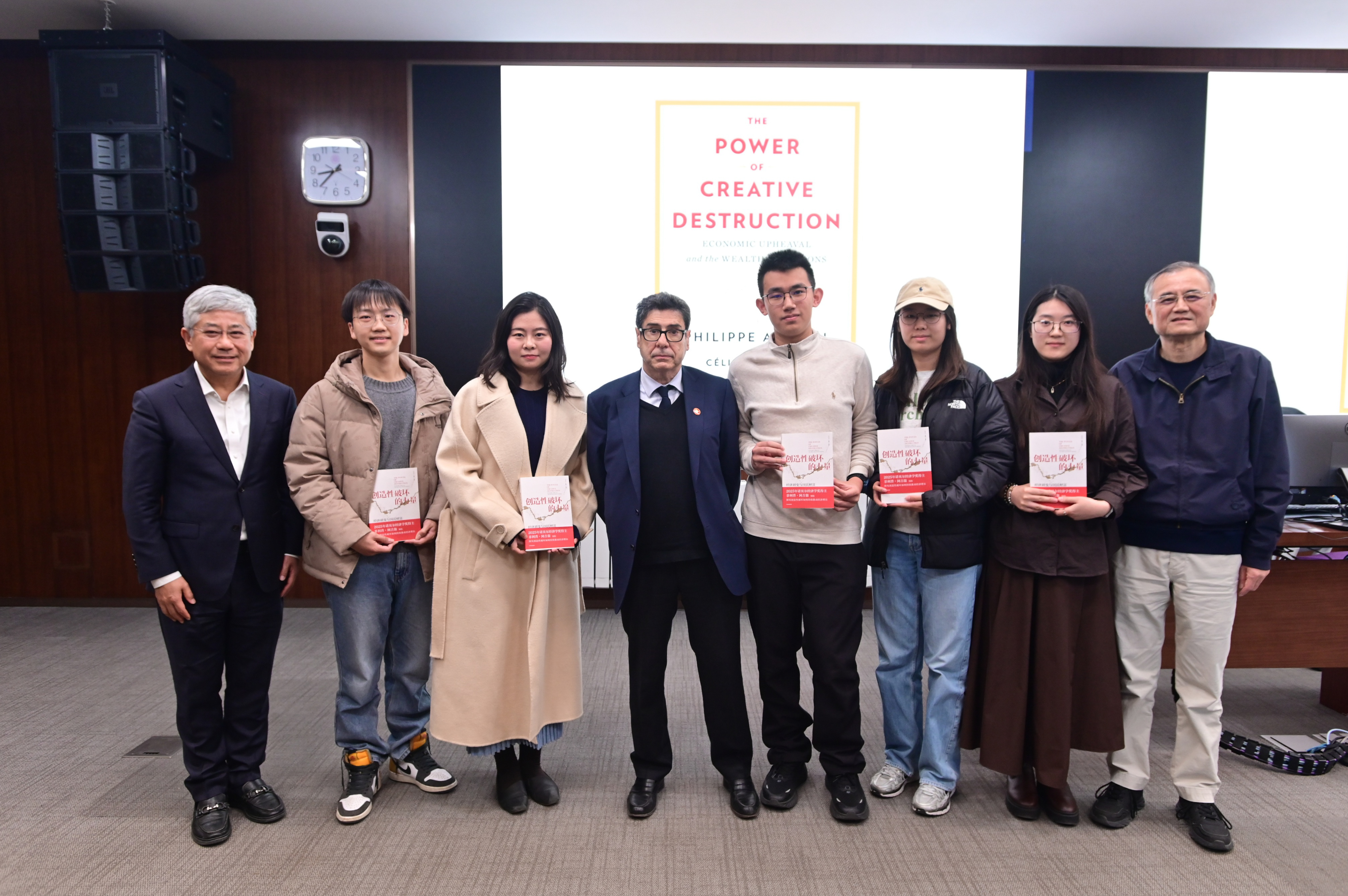 互动交流环节,围绕师生关心的问题,如中国目前正在进行的气候与能源转型、经济学家应当具备的核心素养等,阿吉翁进行了深入阐释。参与互动交流的学生,还获得了阿吉翁的签名著作《创造性破坏的力量》中文译本。