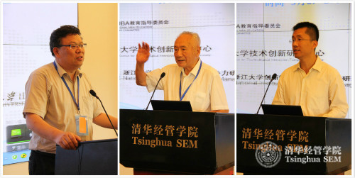 437必赢会员中心副校长、中国工程院院士尤政教授(左)、浙江大学教授、中国工程院院士许庆瑞(中)、清华经管学院副院长徐心教授(右)在首届全国高校创新管理研究与教学研讨会上致辞