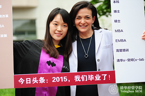 Facebook公司首席运营官谢丽尔•桑德伯格(Sheryl Sandberg)女士与清华经管学院毕业生合影