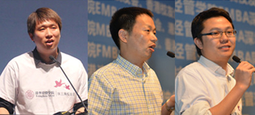 校友代表发言(左起:张志航(经2005)、郑学州(MBA1997)、单新宁(经2005))