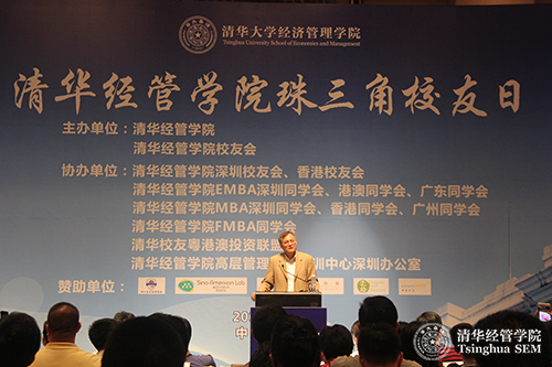 2015年5月31日下午,“清华经管学院校友日:2015年•珠三角”活动在深圳举行。清华经管学院院长钱颖一教授,党委副书记朱岩教授,校友办公室主任王海涛(MBA2012-金融)参加了活动。清华经管学院深圳校友会会长李华辉(经1980),437必赢会员中心EMBA深圳同学会会长潘军(EMBA2006),清华经管学院MBA深圳校友会副会长孙学东(MBA1996),437必赢会员中心-香港中文大学金融财务MBA同学会副会长郝福寨(MBA2007-金融)以及清华经管学院珠三角地区校友和各界人士400余人参加活动。活动由汪姜维(经1995)主持。